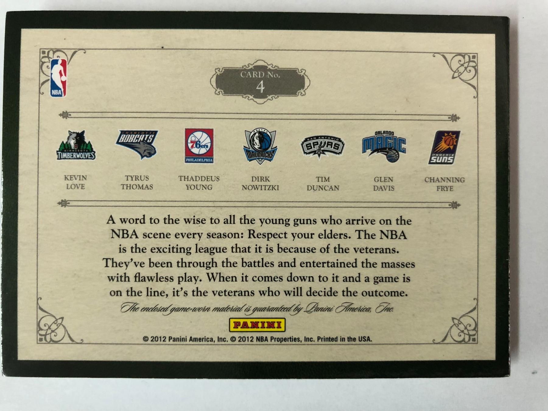 2012-13 Panini Preferred - Veteran Material Booklet #4 Love, Davis, Nowitzki, Duncan, Young, Frye