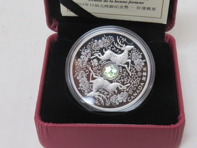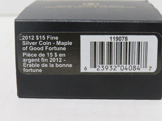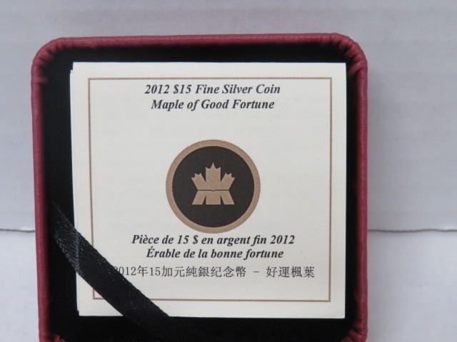 2012 $15 FINE SILVER COIN MAPLE LEAF OF GOOD FORTUNE