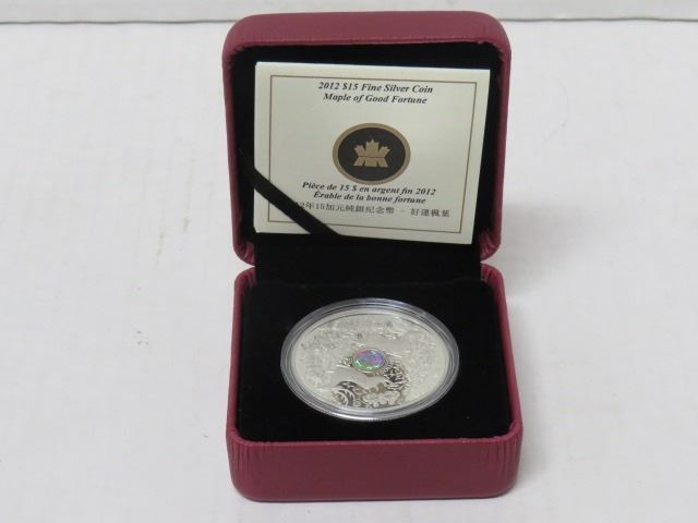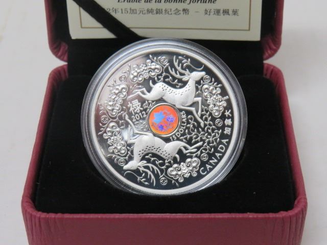 2012 $15 FINE SILVER MAPLE LEAF OF GOOD FORTUNE