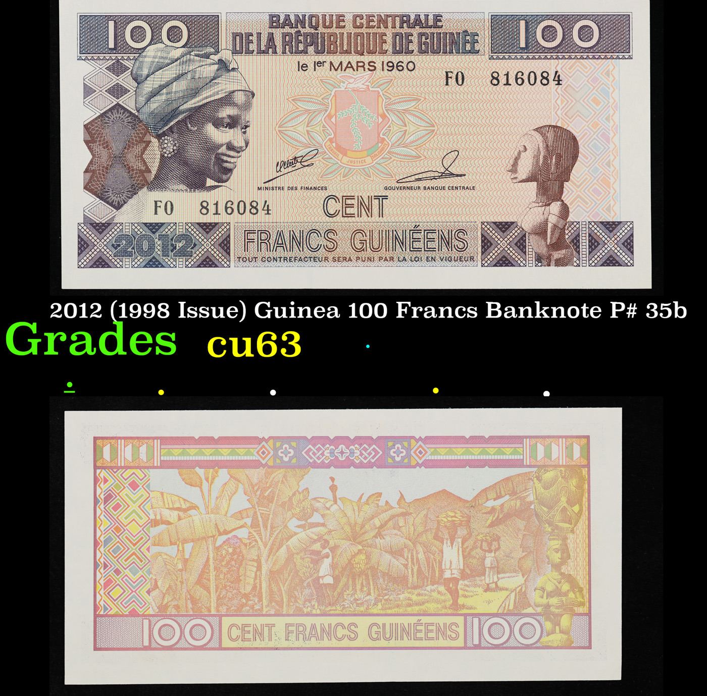 2012 (1998 Issue) Guinea 100 Francs Banknote P# 35b Grades Select CU.