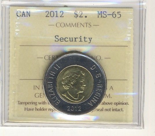 2012 $2 Security ICCS MS65.