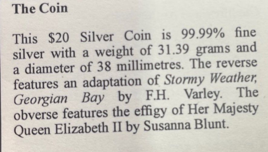 2012 $20 Fine Silver Coin  Stormy Weather, Georgian Bay
