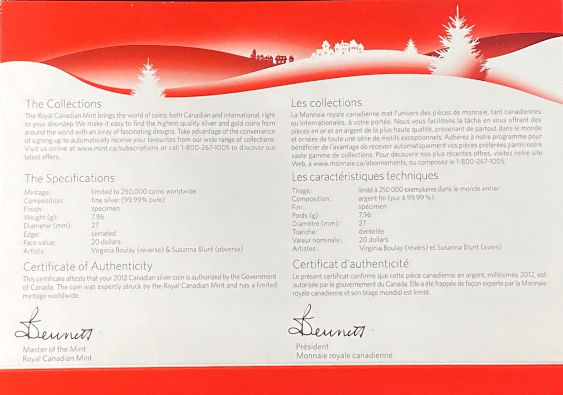2012 $20 Fine Silver Holiday Coin