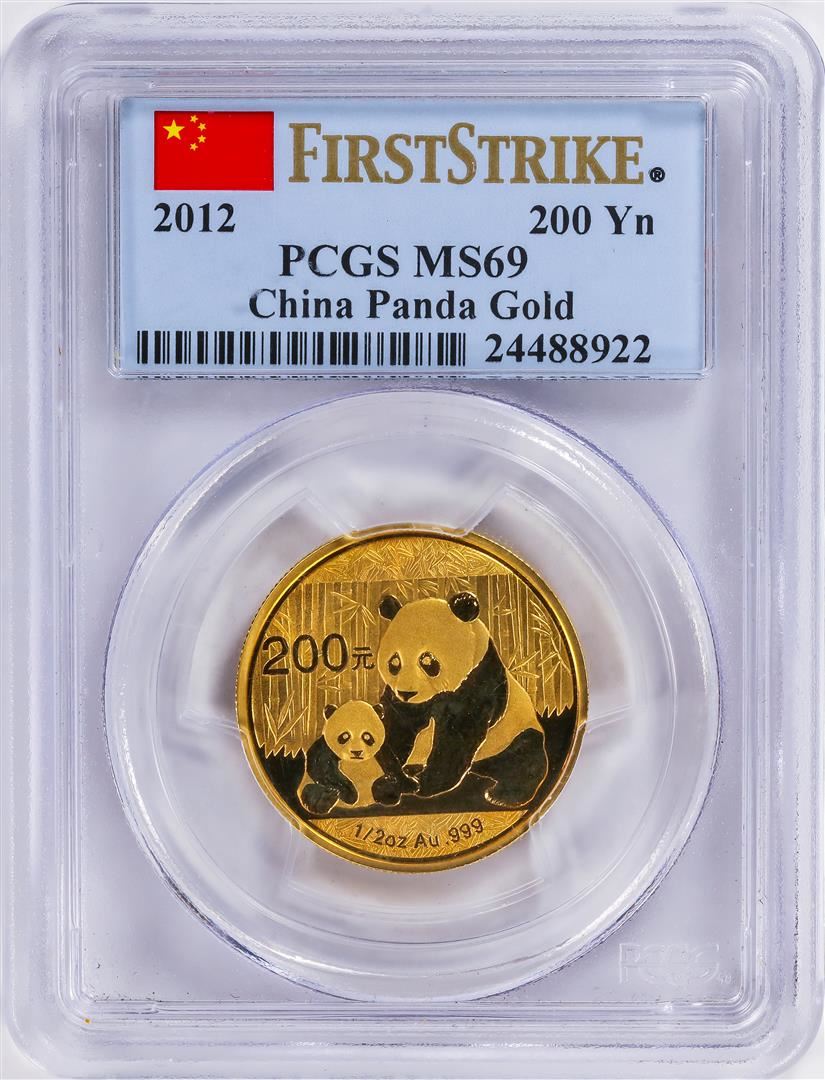 One 2012 200 YN China Panda Gold Coin PCGS MS69 First Strike.