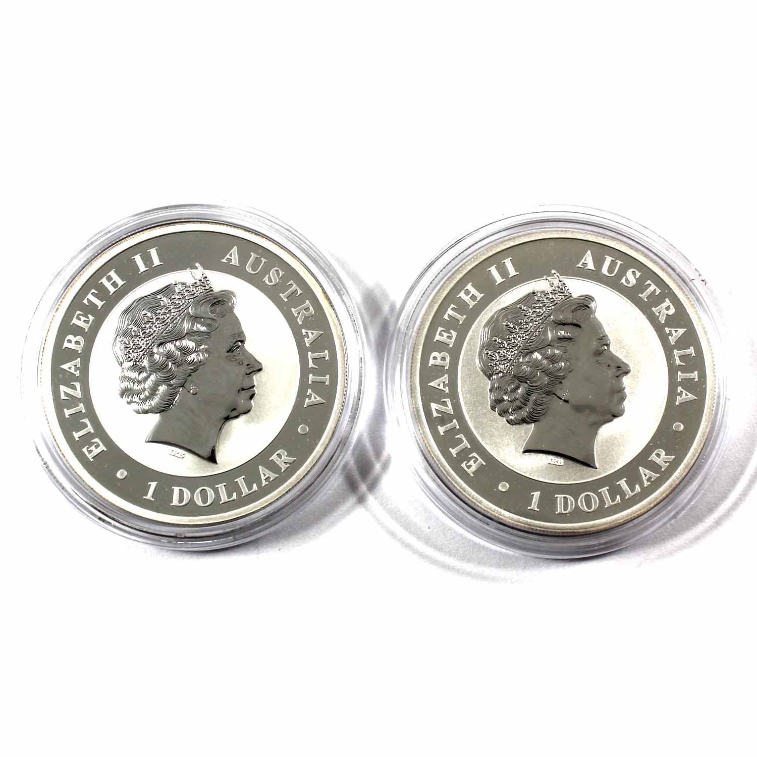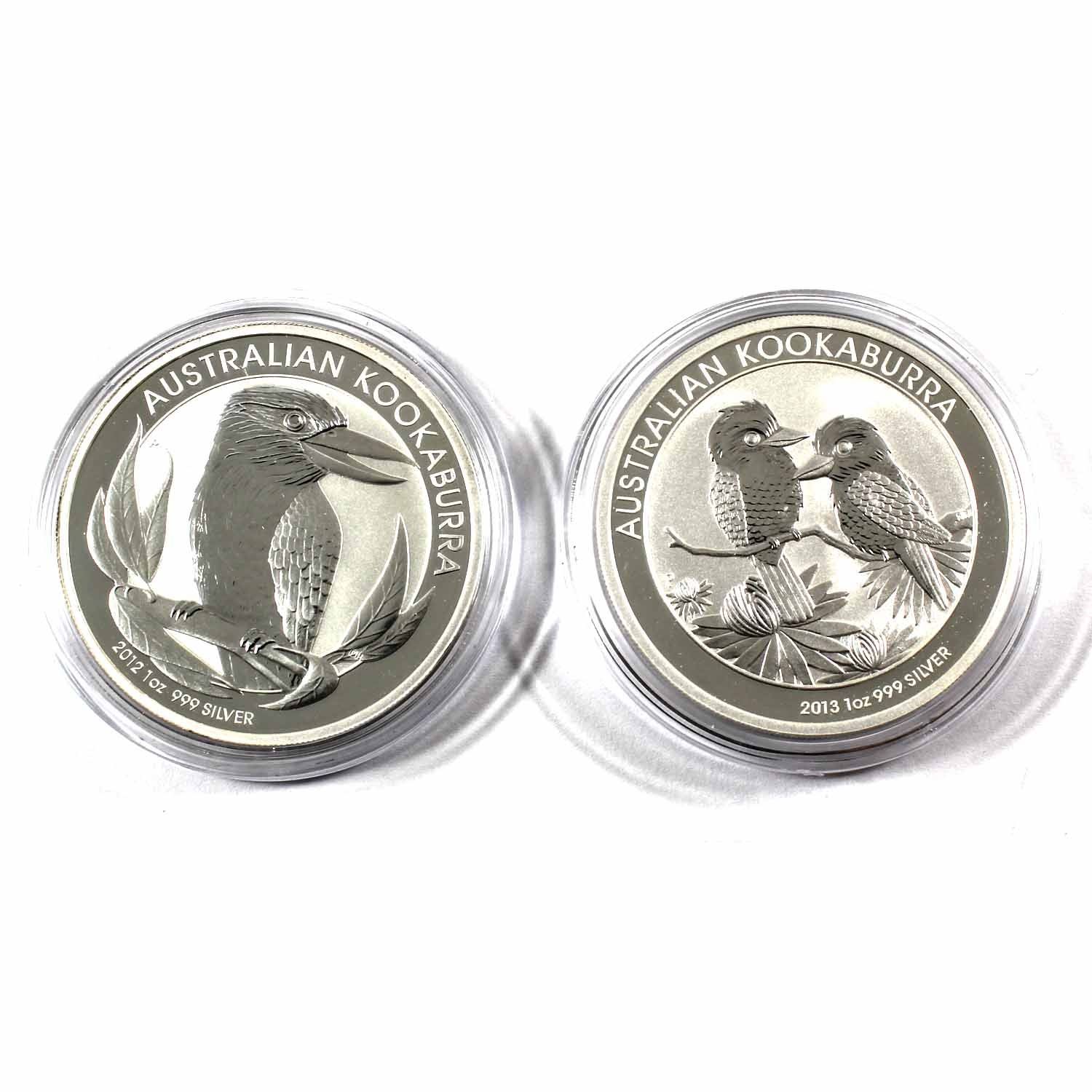 2012 & 2013 Australia $5 1oz Kookaburra Fine Silver Coins in Capsules. 2pcs (TAX Exempt)