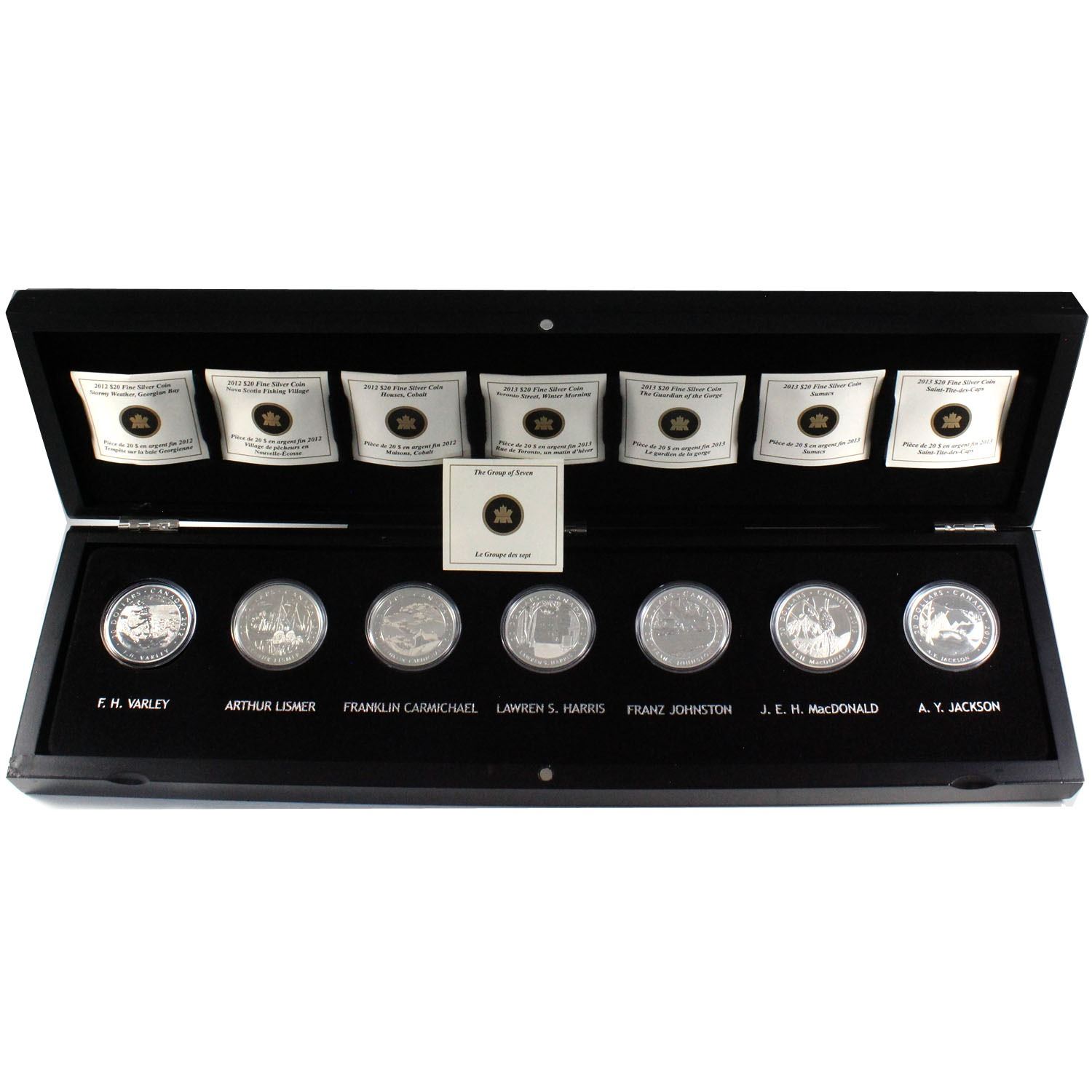 *2012-2013 Canada Complete Group Of Seven 7-coin Fine Silver Set in Deluxe Case (some capsules may be lightly scratched & outer sleeve is worn). TAX Exempt