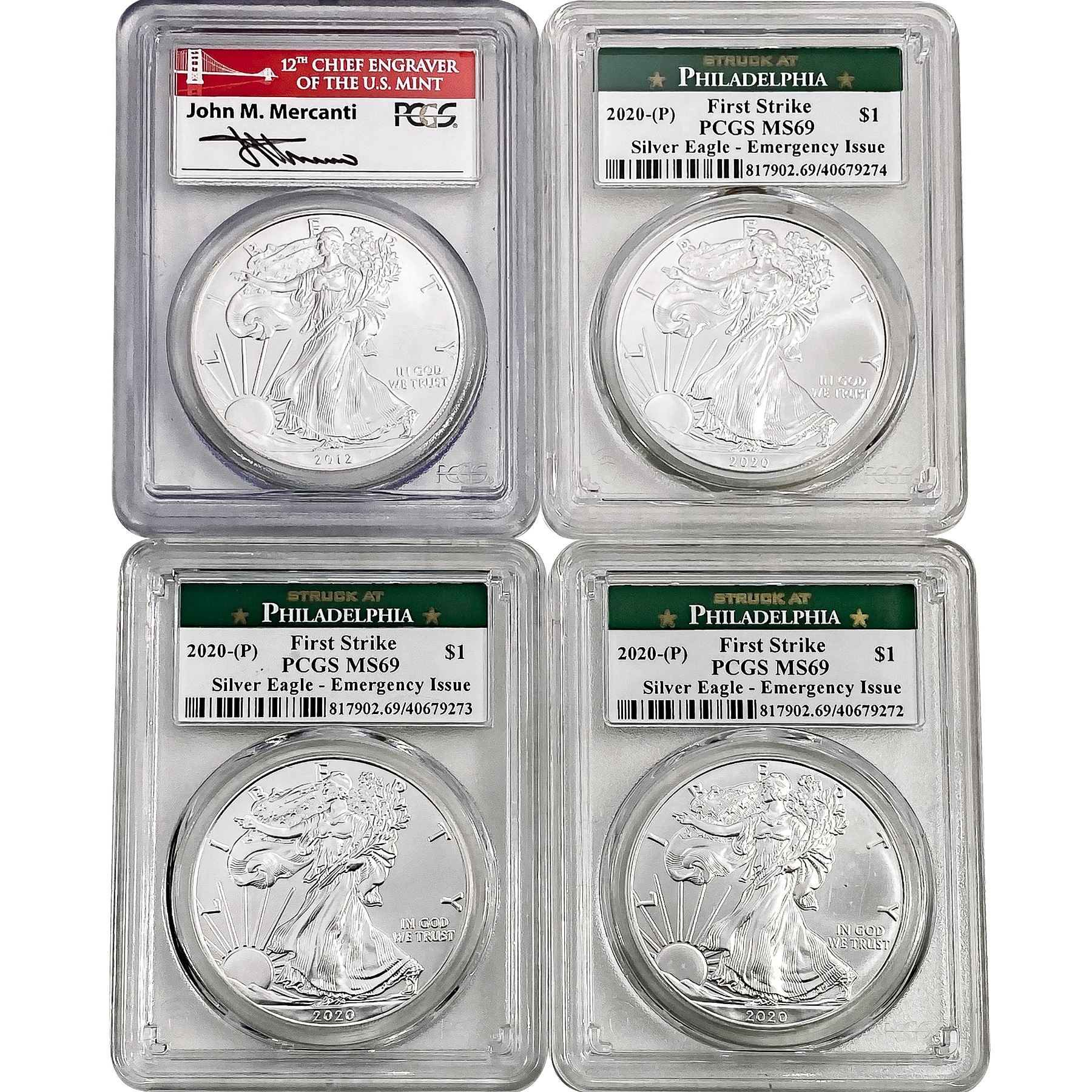 2012-2020 US Silver Eagles [4 Coins] PCGS MS69 1st