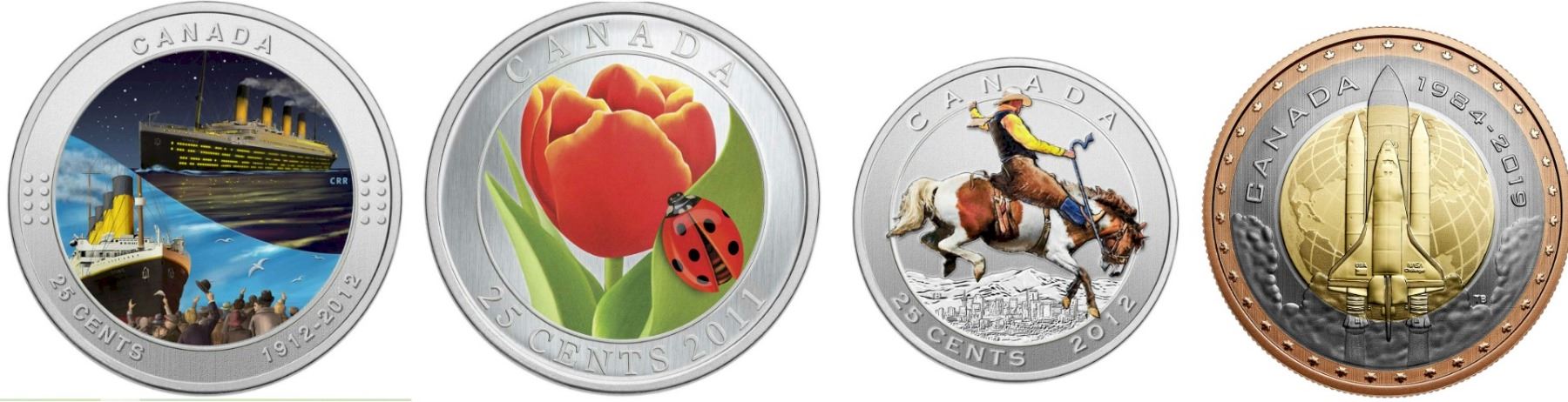 2012 25¢ 100th Anniversary of Calgary Stampede, 2011 Tulip with ladybug, 2012 100 years later The Story of the Titanic, and 2019