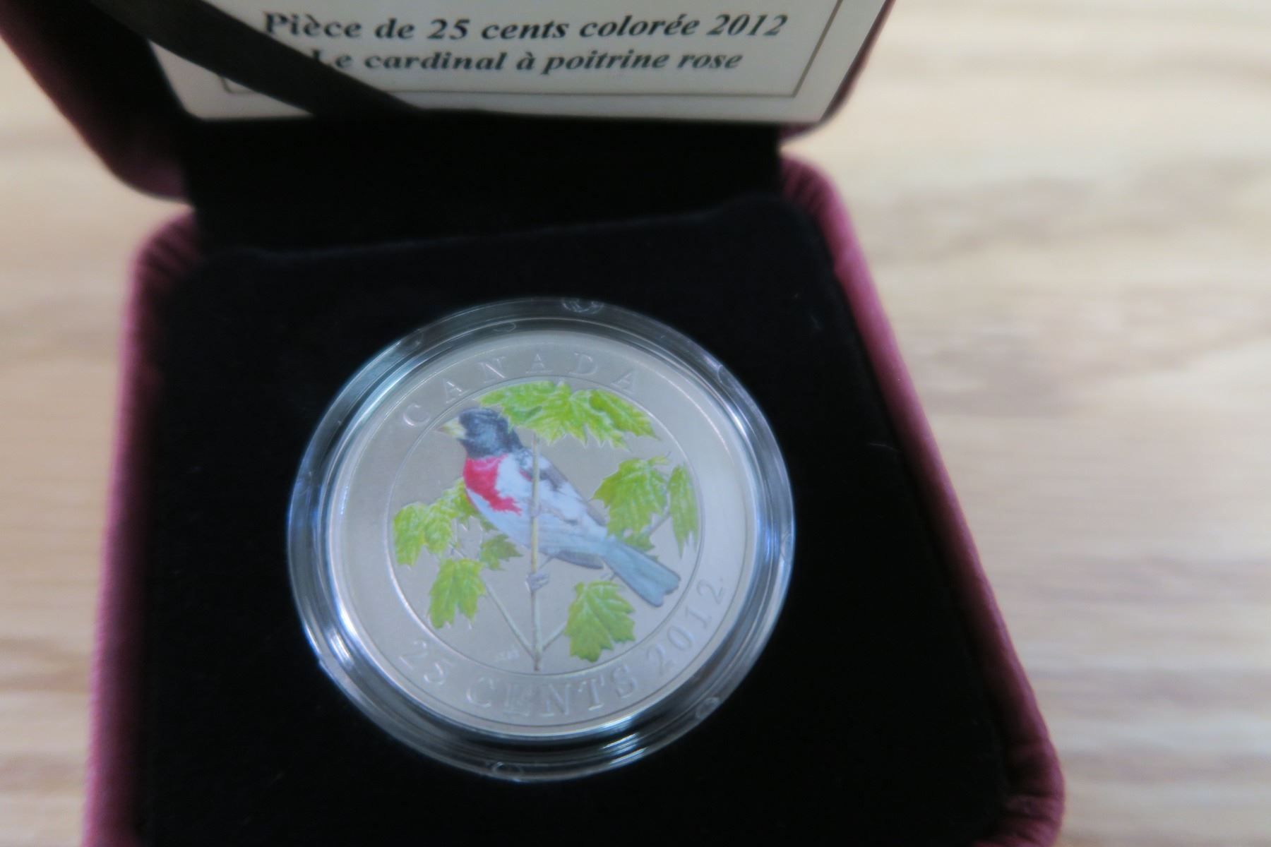 2012 25¢ Coloured Coin - Rose-breasted Grossbeak RCM