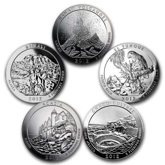 One piece 2012 5-Coin 5 oz Silver ATB Set (America the Beautiful)