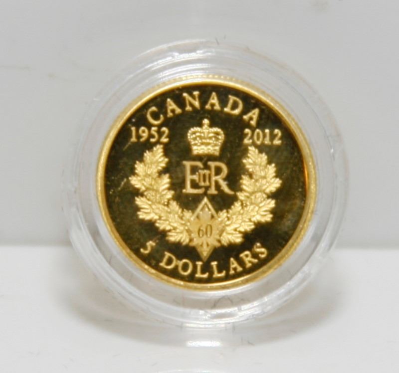 2012 Canadian $5 Pure Gold Coin - The Queen's Diamond Jubilee, In Original Box With COA