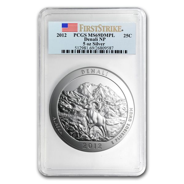 2012 5 oz Silver ATB - Denali MS-69 DMPL First Strike P **|**|** 2012 5 oz Silver ATB - Denali MS-69 DMPL First Strike PCGS ; MSRP: $700