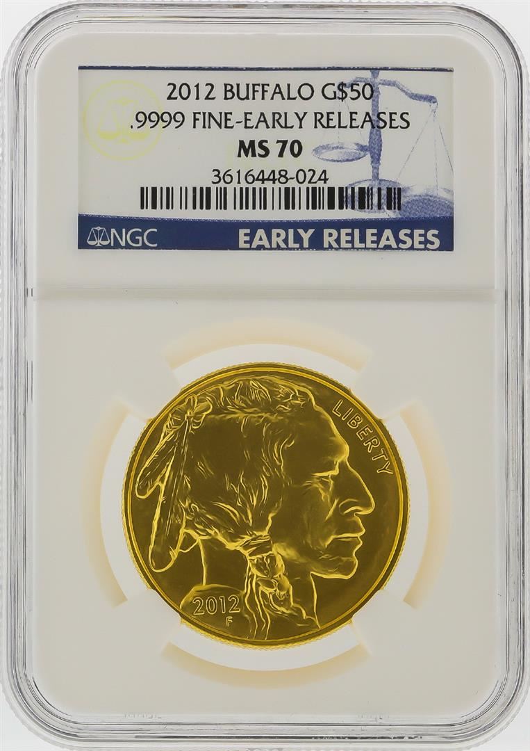 One 2012 $50 American Buffalo Gold Coin Early Release NGC MS70. NGC Certified.
