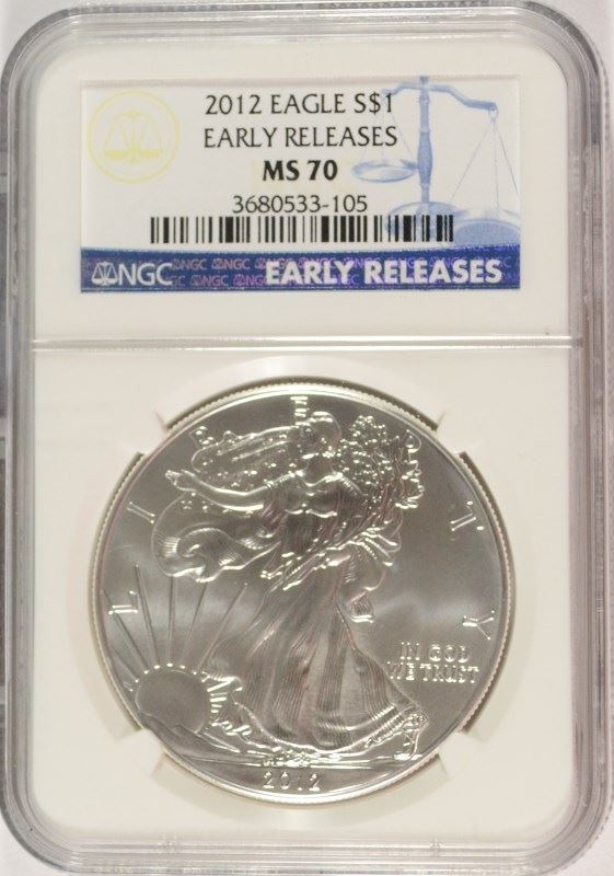 2012 AMERICAN SILVER EAGLE, EARLY RELEASES, NGC MS-70