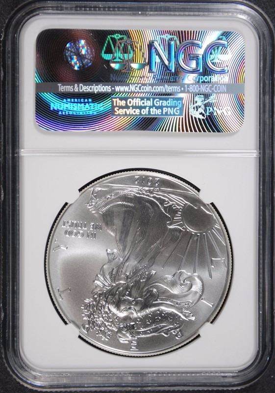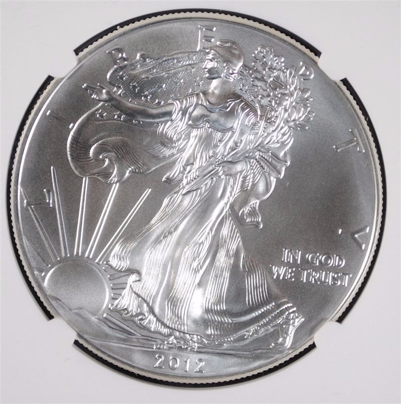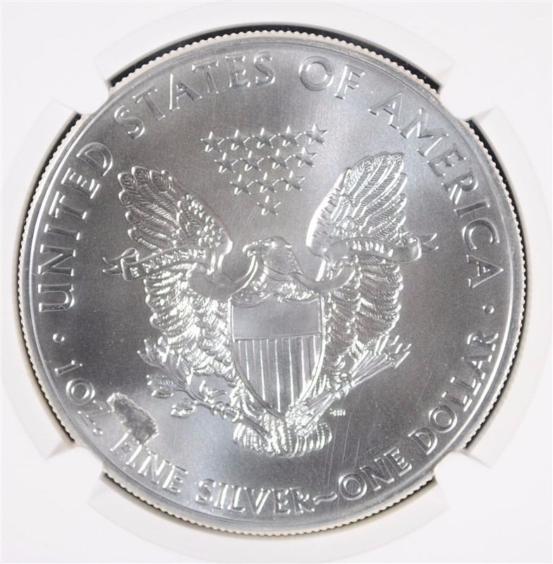 2012 AMERICAN SILVER EAGLE ( ERROR ) REVERSE STRUCK THROUGH, NGC MS-69 RARE!!