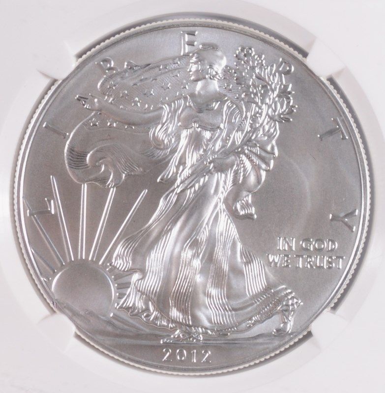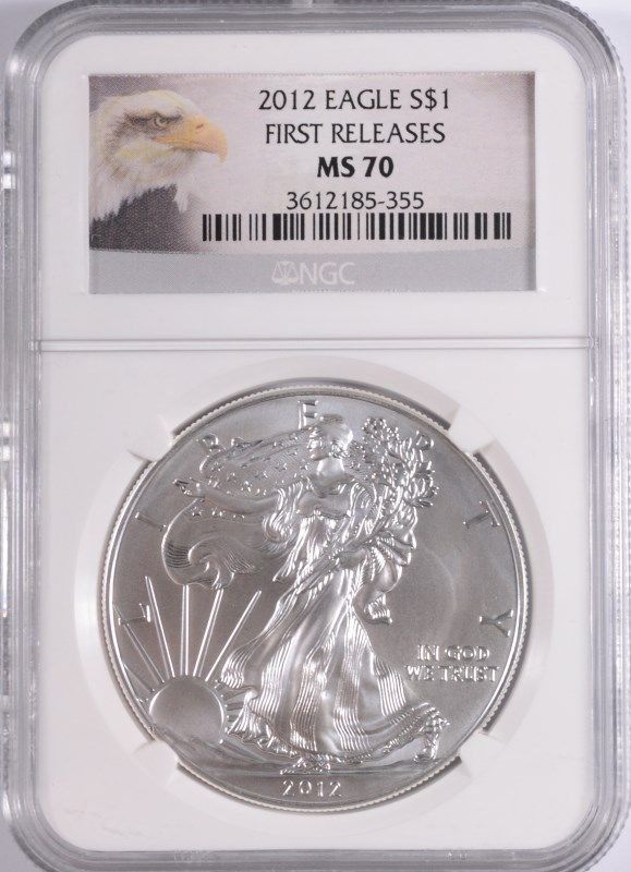 2012 AMERICAN SILVER EAGLE, NGC MS-70 FIRST RELEASE EAGLE LABEL