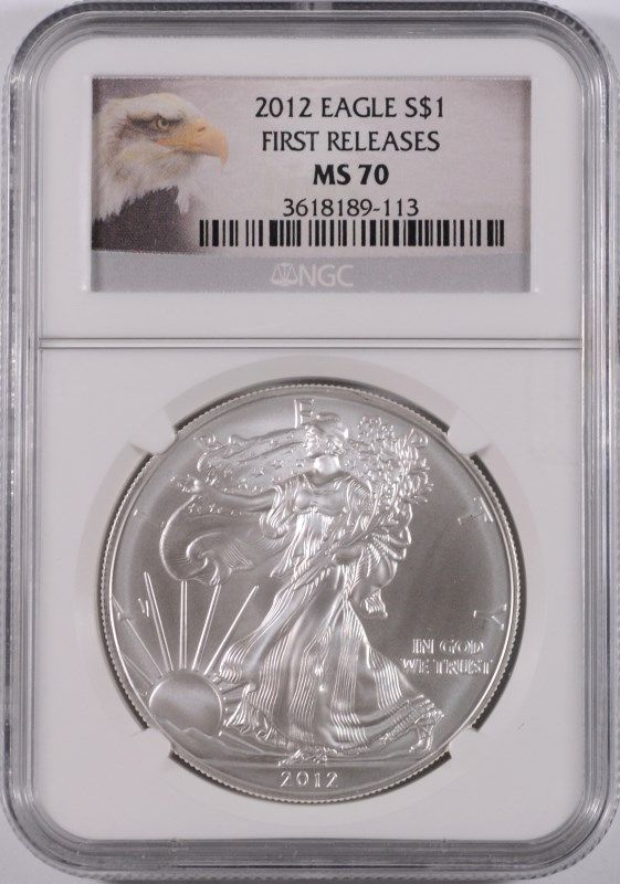 2012 AMERICAN SILVER EAGLE, NGC MS-70 FIRST RELEASES EAGLE LABEL!