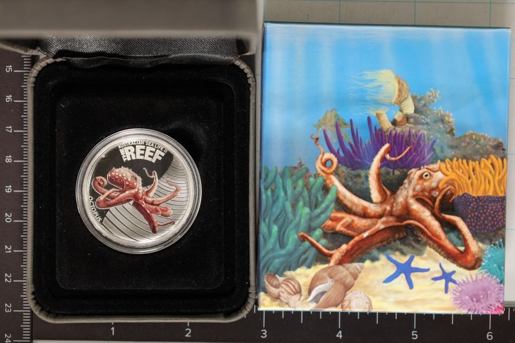OCTOPUS COIN IN BOX AND CERTIFICATE IN HARD PLASTIC CAPSULE. THIS IS PART OF A 10 COIN SET.