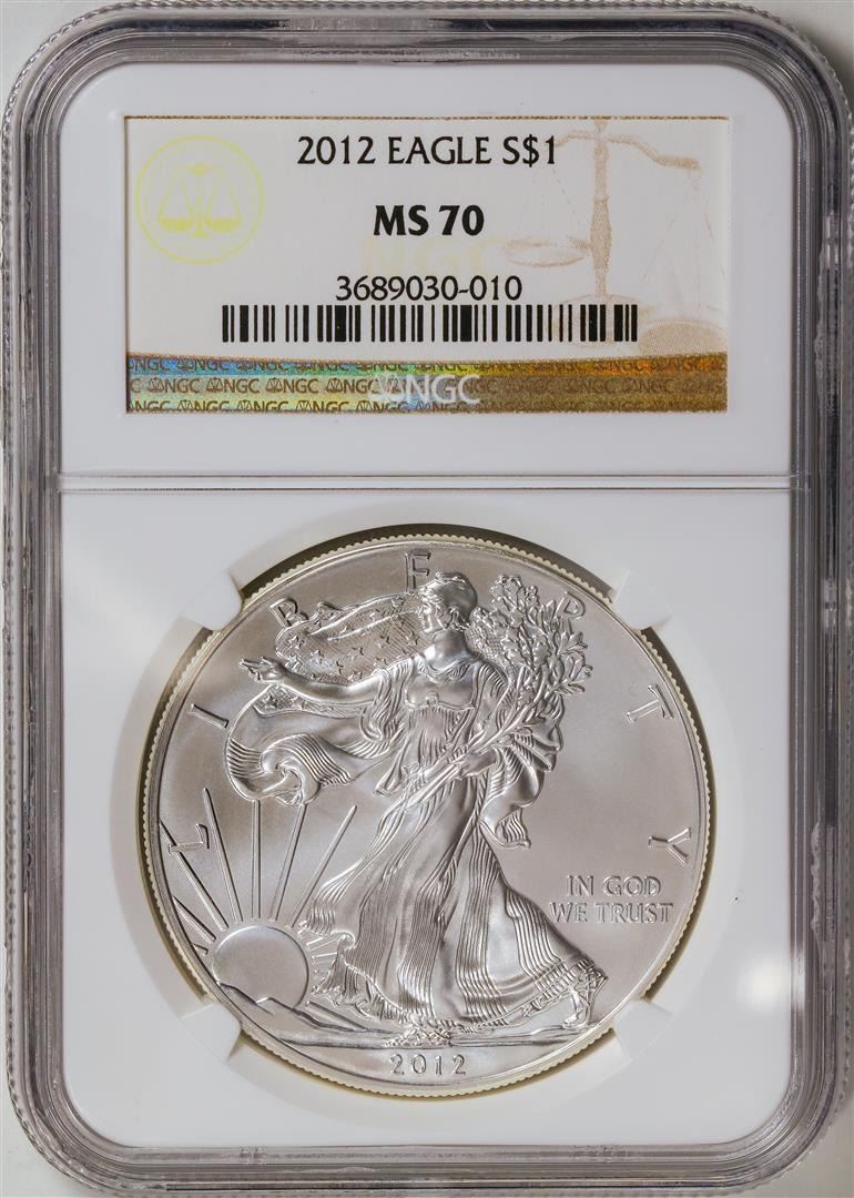 One 2012 American Silver Eagle.999 Fine Silver Dollar Coin NGC MS70.