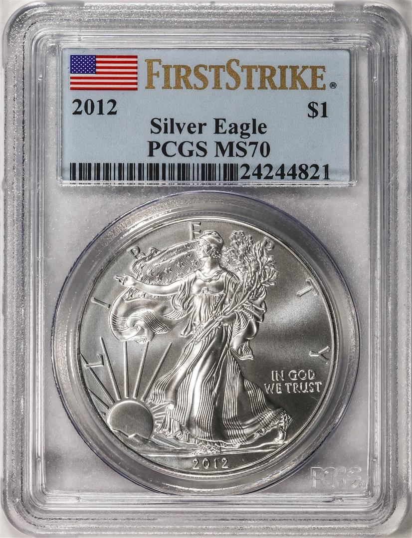 One 2012 American Silver Eagle Coin PCGS MS70 First Strike. PCGS Graded.