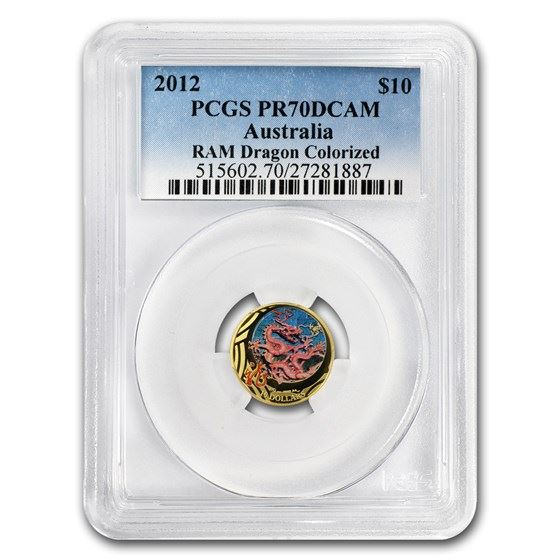 One piece 2012 Australia 1/10 oz Proof Gold Dragon PR-70 PCGS (Colorized)