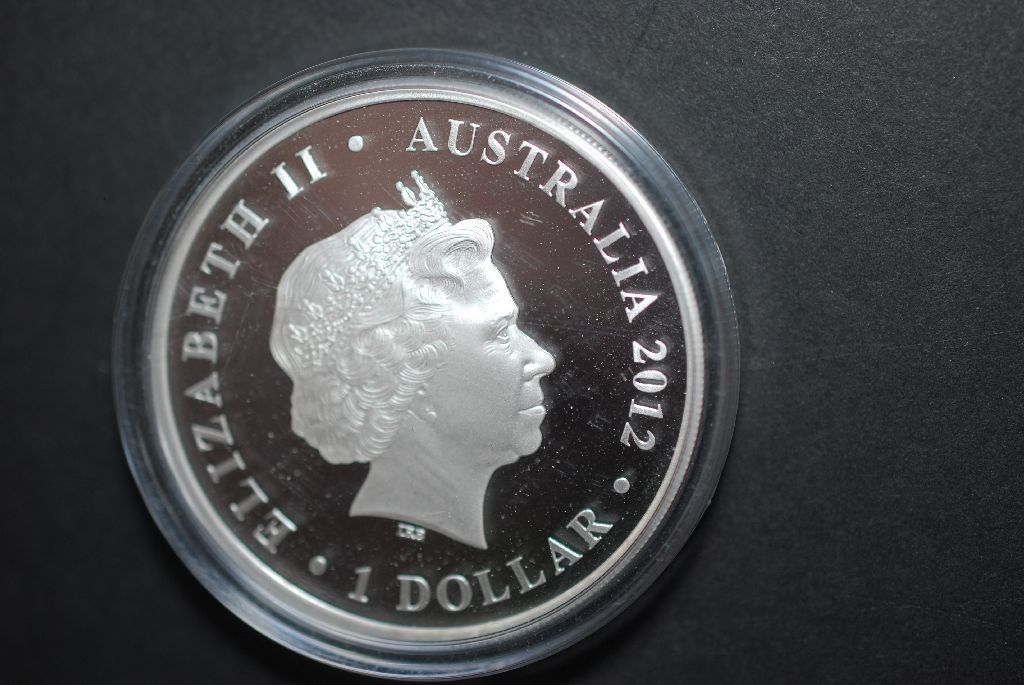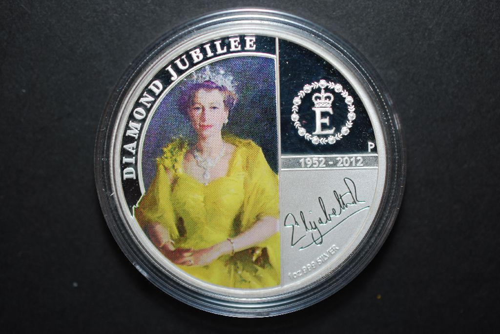 2012 Australia $1 Diamond Jubilee Colorized H.M. Queen Elizabeth II Silver Proof Foreign Coin In Display Box With COA Included; 99.9 Pure Silver 1 Oz.; The Perth Mint; EST. $75-125