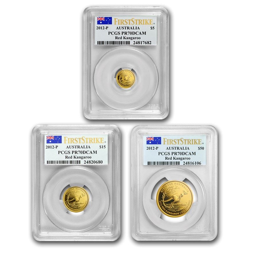 2012 Australia 3-Coin Gold Kangaroo Set PF-70 PCGS FS