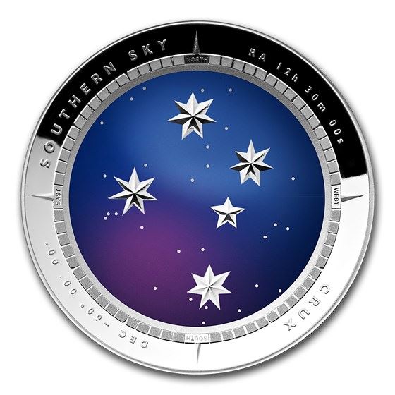One piece 2012 Australia Silver $5 Color Domed Crux Southern Sky Proof