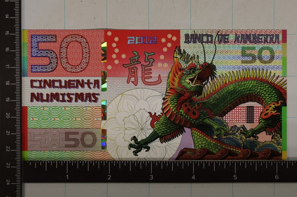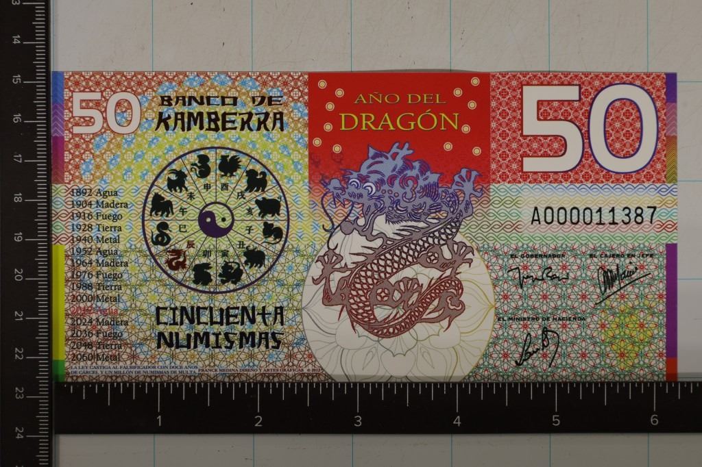 COLORIZED BILL. YEAR OF THE DRAGON, CRISP UNC