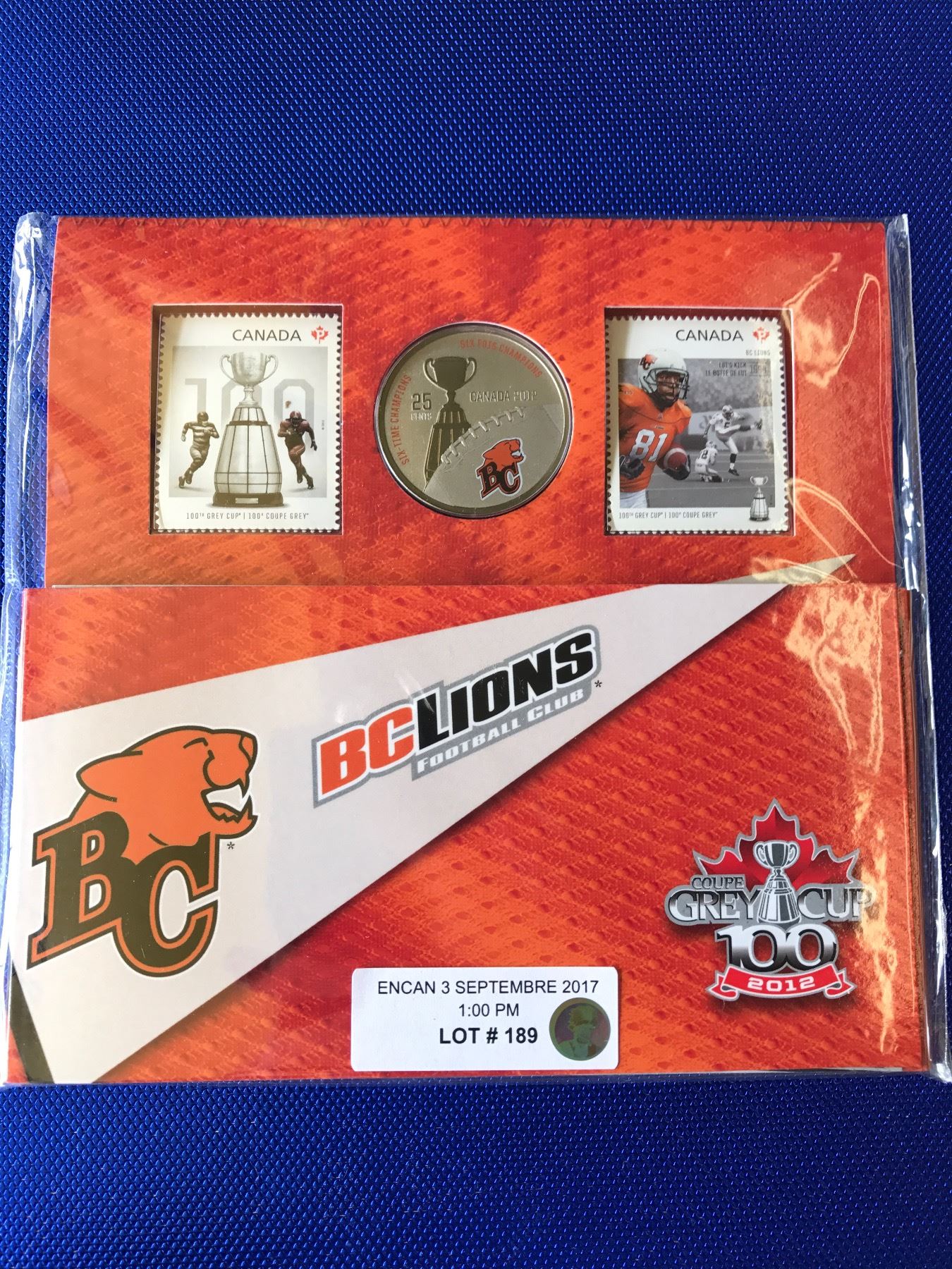 2012 BC LIONS 25 CENTS + STAMP
