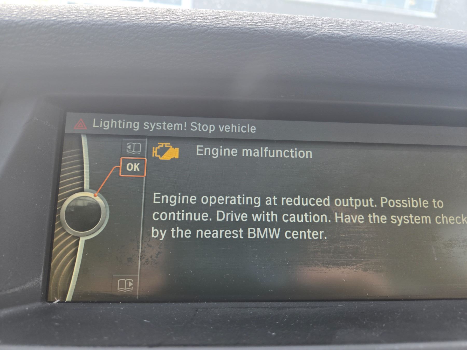 **CHECK ENGINE LIGHT IS ON** ENGINE IS NOT FUNCTIONING AT FULL CAPACITY. RUNNING WITH MINIMUL OUTPUT. NEEDS TO BE BROUGHT TO A BMW DEALERSHIP TO CONFIRM ENGINE PROBLEMS. VERY LOUD WHEN TURNED ON, IDLING SHAKES THE VEHICLE - ROUGH IDLE. ONE SIGNAL LIGHT IS NOT WORKING ON THE DASH.