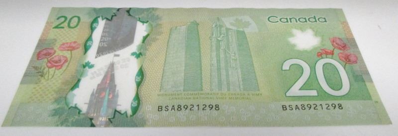 2012 Bank Of Canada $20 Radar Serial Number Note - BSA8921298