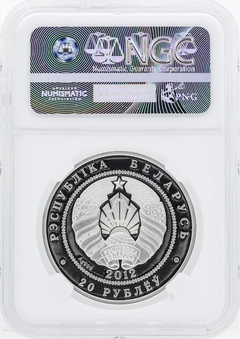 One 2012 Belarus 20 Roubles Two European Bison Silver Coin NGC PF70 Ultra Cameo.