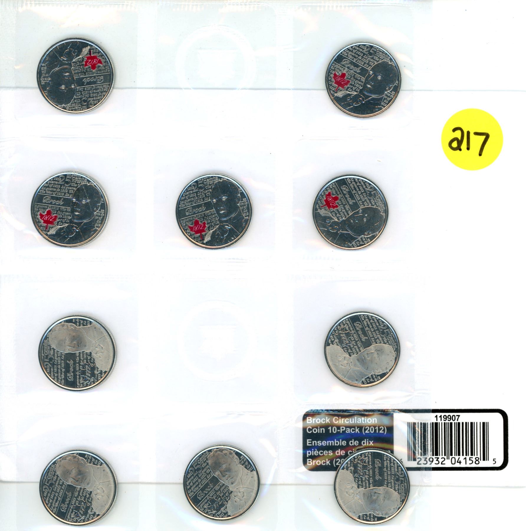 2012 Brock 25 Cent 10 Pack 5 Colored 5 Plain