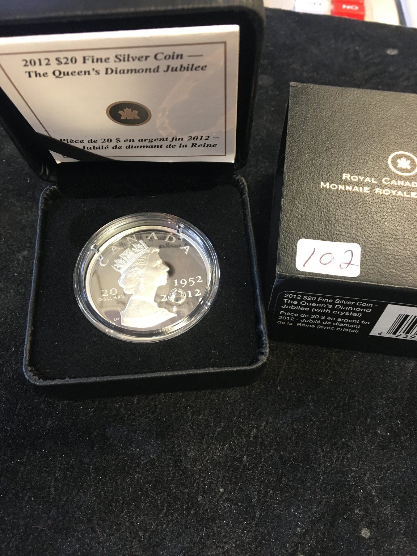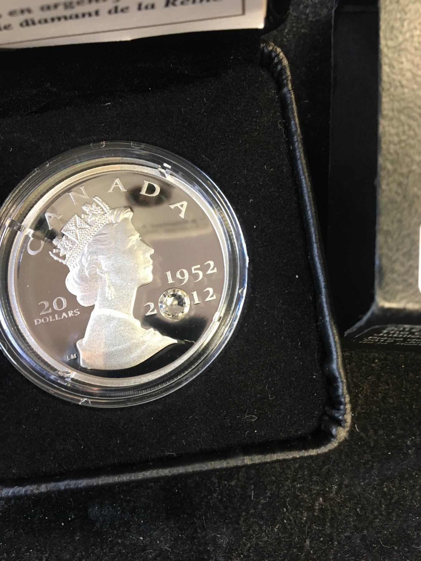 NICE SILVER COIN WITH CRYSTAL.COME WITH ITS ORIGINAL CASE