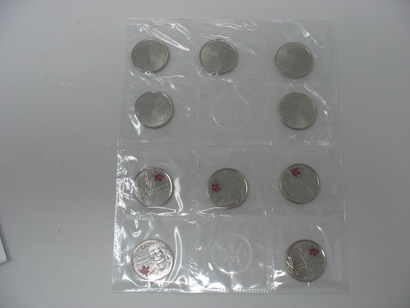 2012 CANADIAN TECUMSEH CIRCULATION COIN - 10 PACK - 5 Coloured & 5 Non Colored