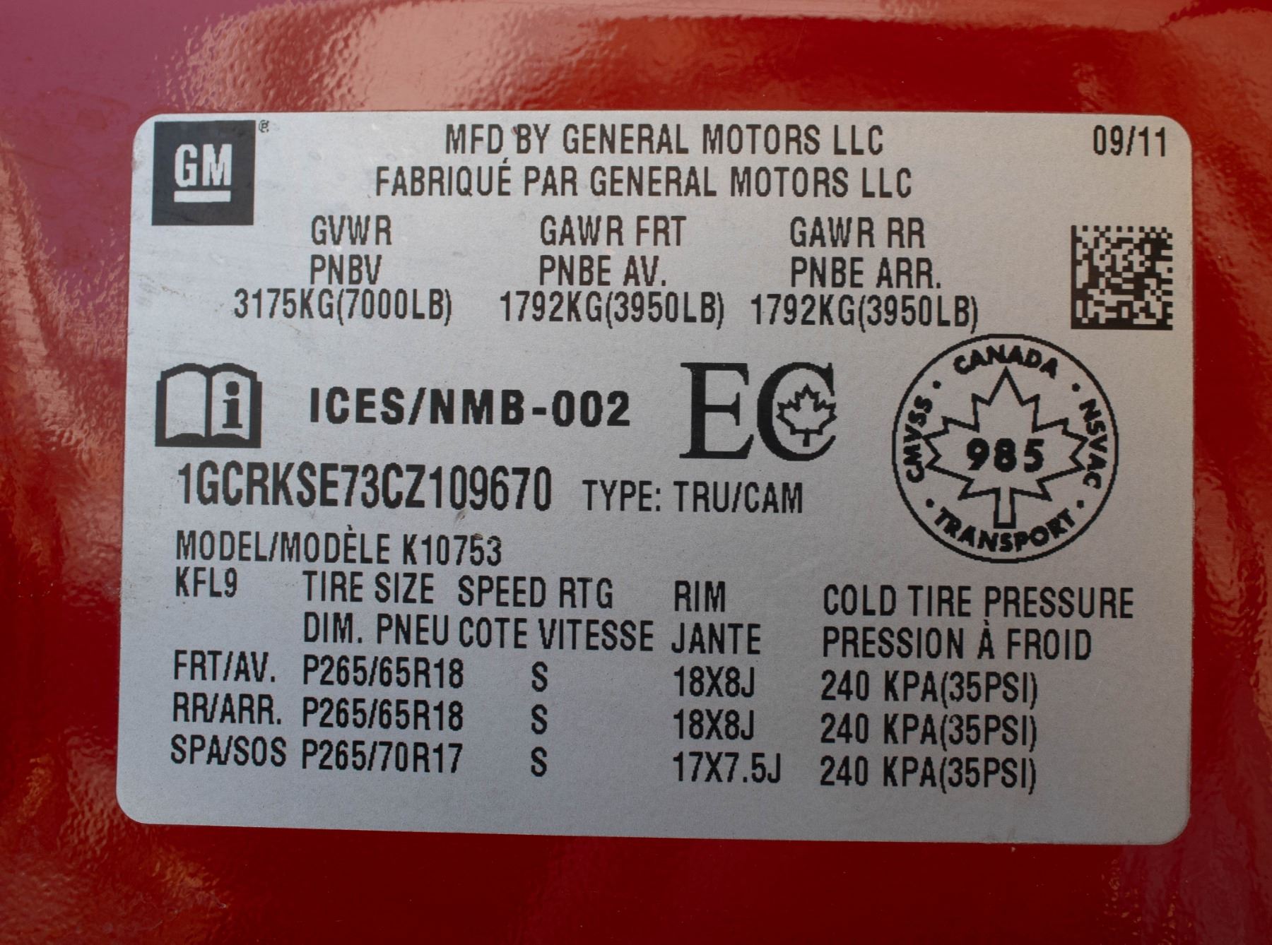 VIN: 1GCRKSE73CZ109670