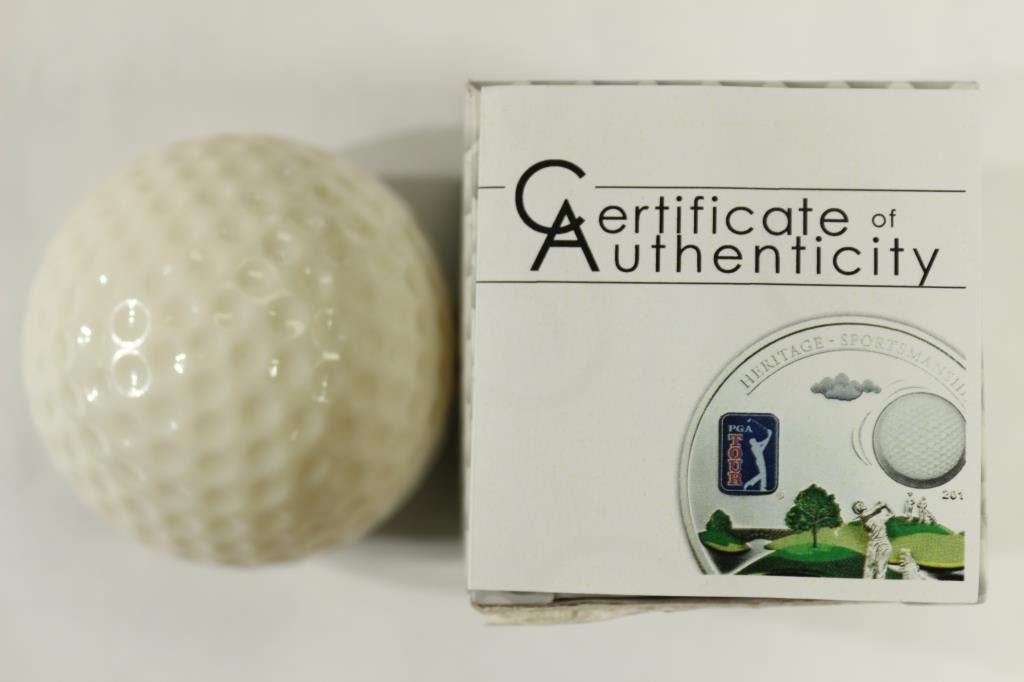 GOLF BALL WITH COMPOUND MARBLE INSERT IN NEAT GOLF BALL PACKAGING