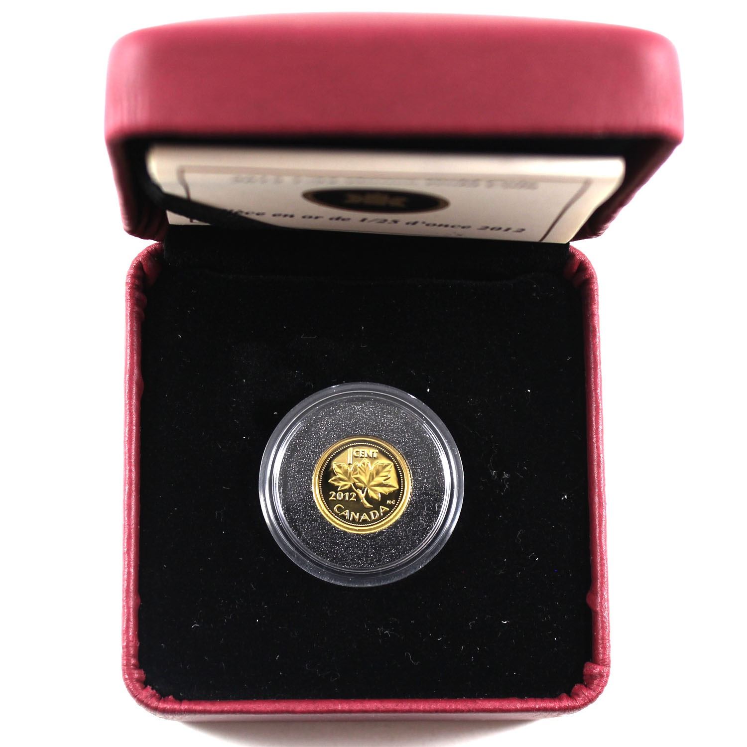 2012 Canada 1-cent Farewell to the Penny 1/25oz .9999 Fine Gold Coin (TAX Exempt). Issued by the Royal Canadian Mint