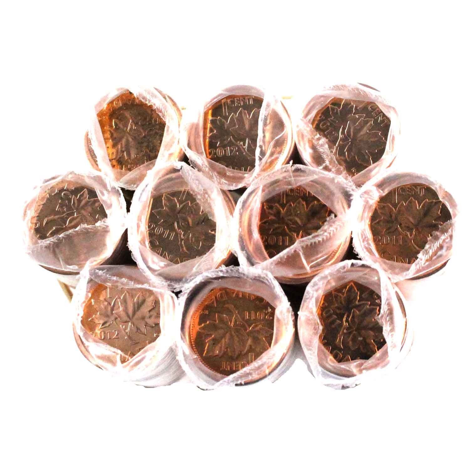 *2012 Canada 1-cent Magnetic & Non-Magnetic Original Rolls of 50pcs - 5x of Each Type. 10 rolls.