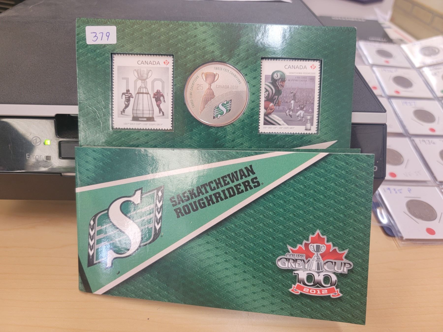 2012 Canada 100th Grey Cup coin + stamp set