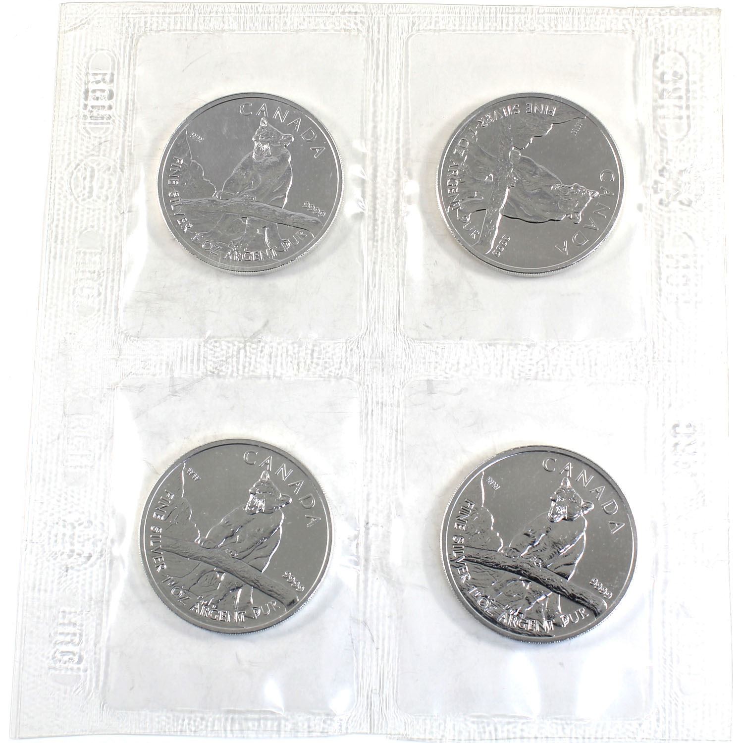2012 Canada 1oz Cougar .9999 Fine Silver Maple Leafs in Sealed Mint Plastic Sheet. 4pcs (TAX Exempt)