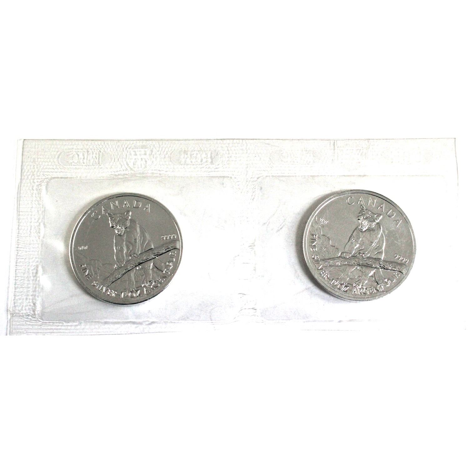 2012 Canada 1oz Wildlife Series - Cougar .9999 Fine Silver Maple Leafs, Together in Sealed Mint Plastic (One coin lightly toned). 2pcs (TAX Exempt)