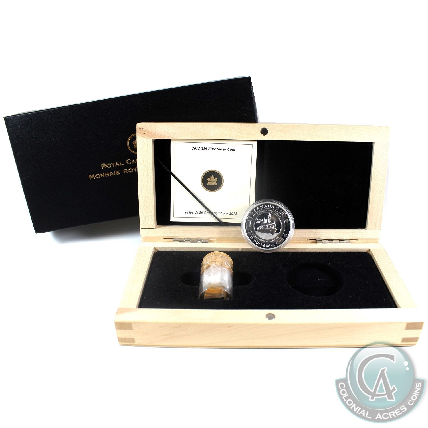2012 Canada $20 50 Years of the Coast Guard Fine Silver Coin with a vial including a small piece of steel from the bow of CCGS Louis S. St-Laurent (Capsule lightly scratched). (TAX Exempt)
