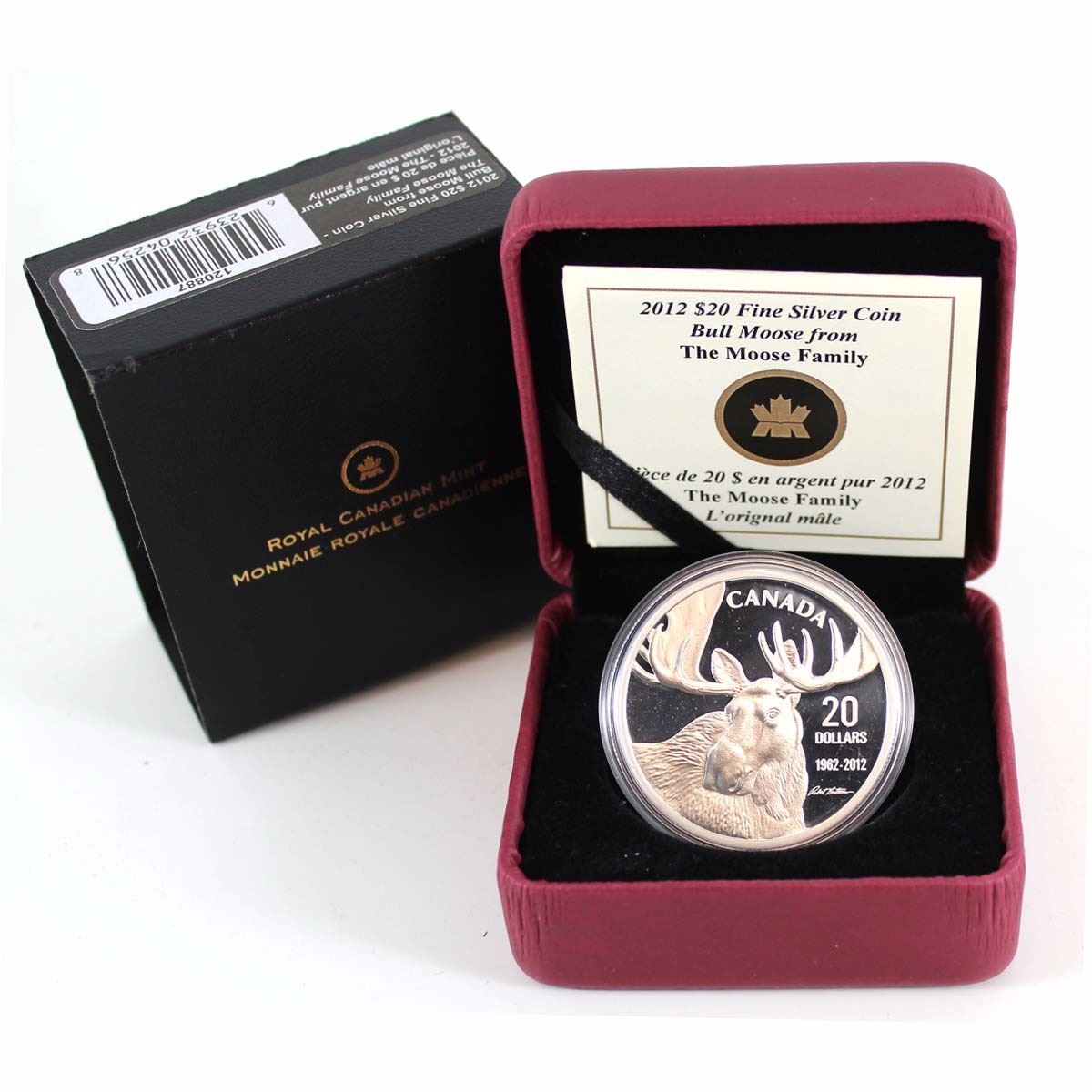 2012 Canada $20 Bull Moose from the Moose Family by Robert Bateman Fine Silver Coin (TAX Exempt).