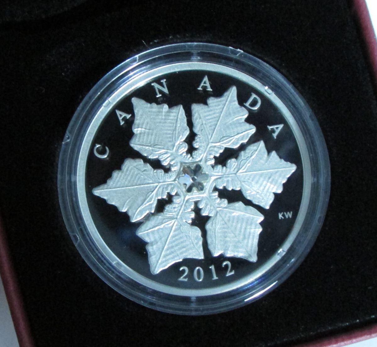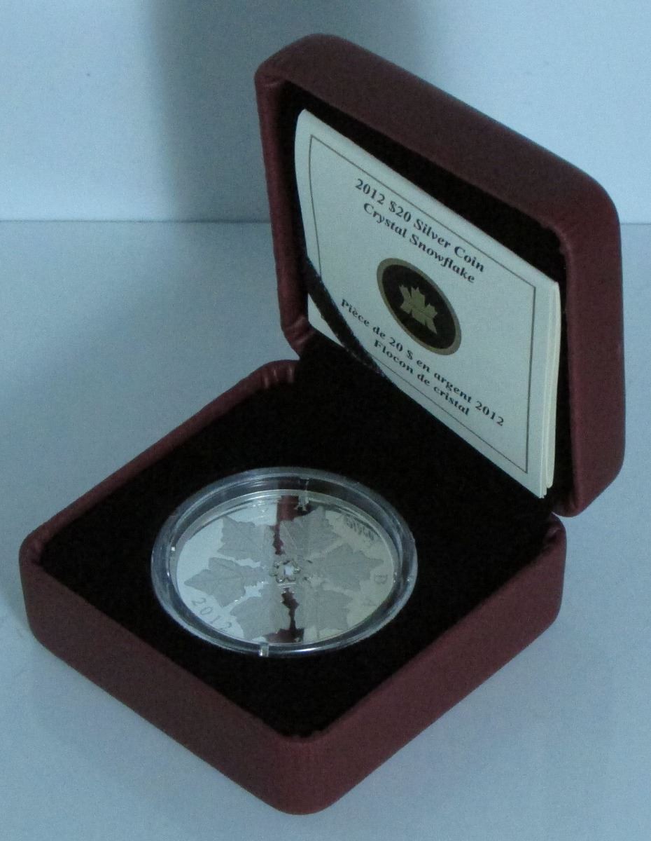 2012 Canadian $20 Fine Silver Coin - Crystal Snowflake (White Crystal In Centre)