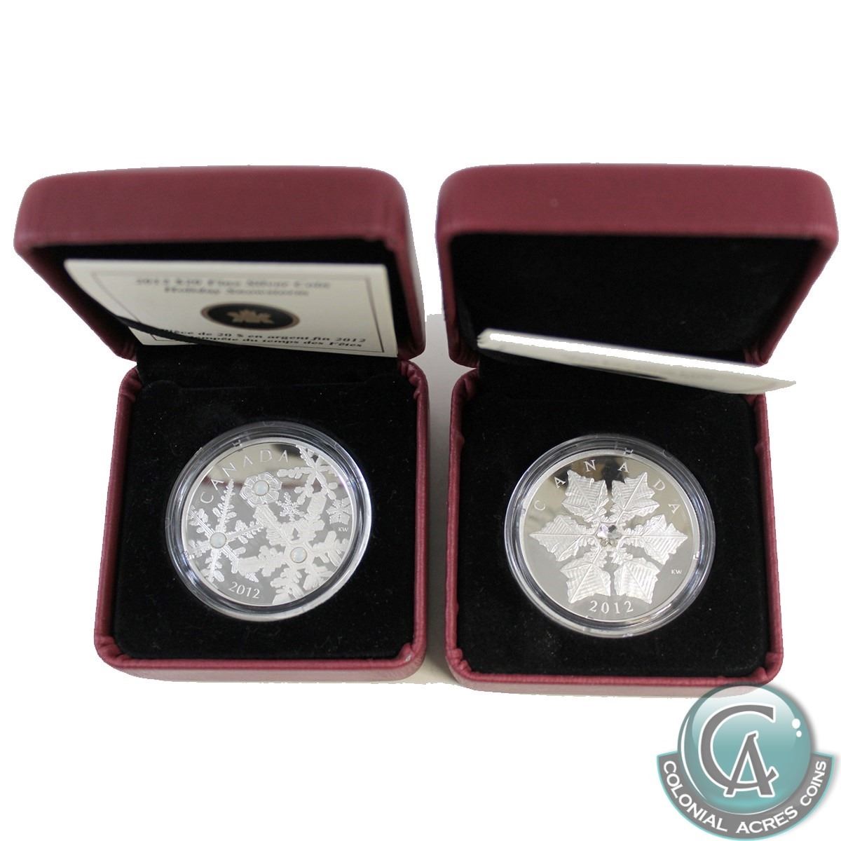 2012 Canada $20 Holiday Snowflake with Crystal & 2012 Canada $20 Holiday Snowstorm Fine Silver Coins (capsules are lightly scratched and outer cardboard sleeves are not included). 2pcs (TAX Exempt)
