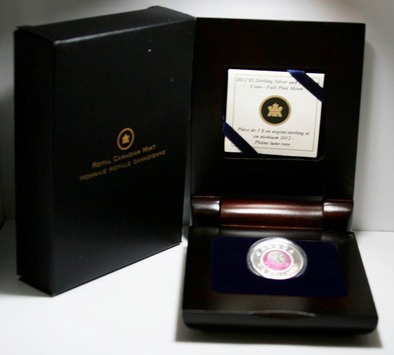2012 Canadian $5 Sterling Silver & Niobium Coin - Full Pink Moon - In Special Wooden Box