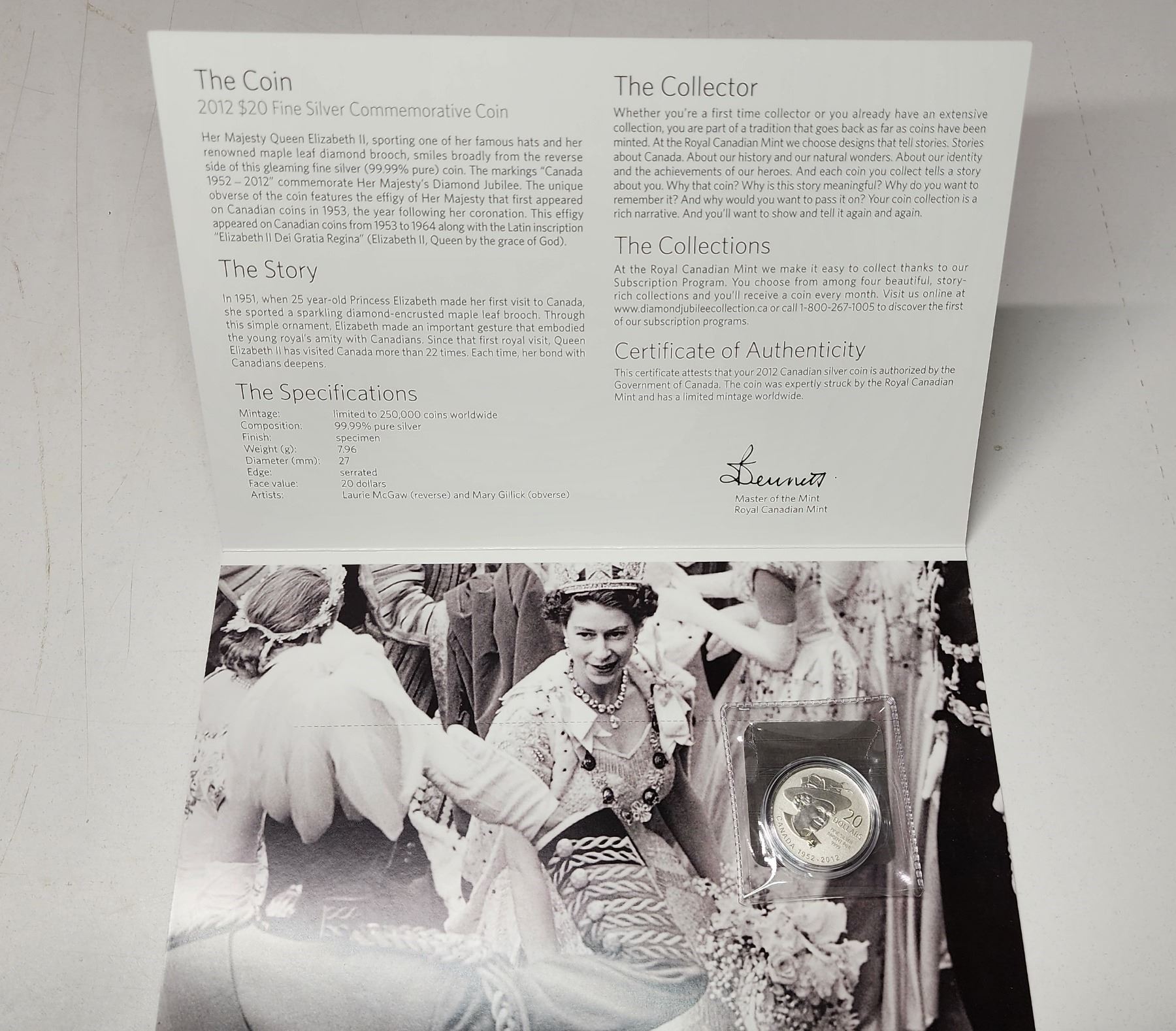 2012 Canada Fine Silver $20 QEII Diamond Jubilee Commemorative Coin/folder (2.)