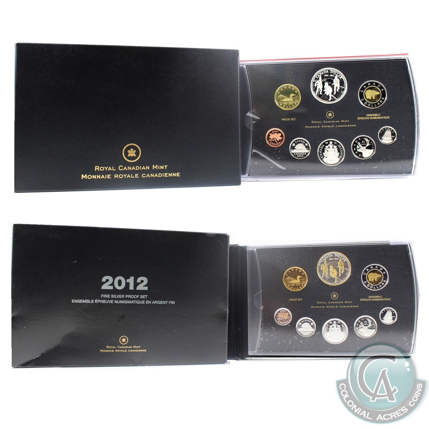 2012 Canada War of 1812 Fine Silver Deluxe Proof Set & 2012 War of 1812 Regular Proof Set (The deluxe set outer sleeve is lightly worn & the COA was stuck to the back of the plastic coin holder and has a surface tear). 2pcs (TAX Exempt)